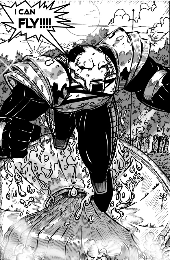 Sheldon survived his suicidal leap from the Chornskopf building last issue, but wherever he landed, it wasn’t downtown Satellite Falls.  This issue, Sheldon learns more about the origin of Starstorm and tries to clean up the mess he left up on the roof of the Chornskopf building, with deadly results. . .