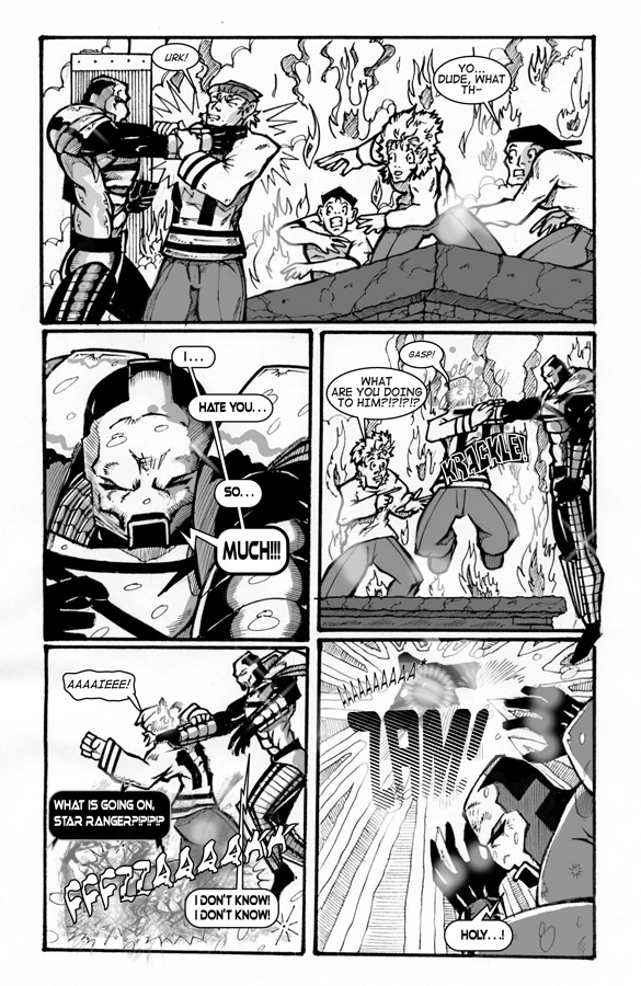 Sheldon survived his suicidal leap from the Chornskopf building last issue, but wherever he landed, it wasn’t downtown Satellite Falls.  This issue, Sheldon learns more about the origin of Starstorm and tries to clean up the mess he left up on the roof of the Chornskopf building, with deadly results. . .